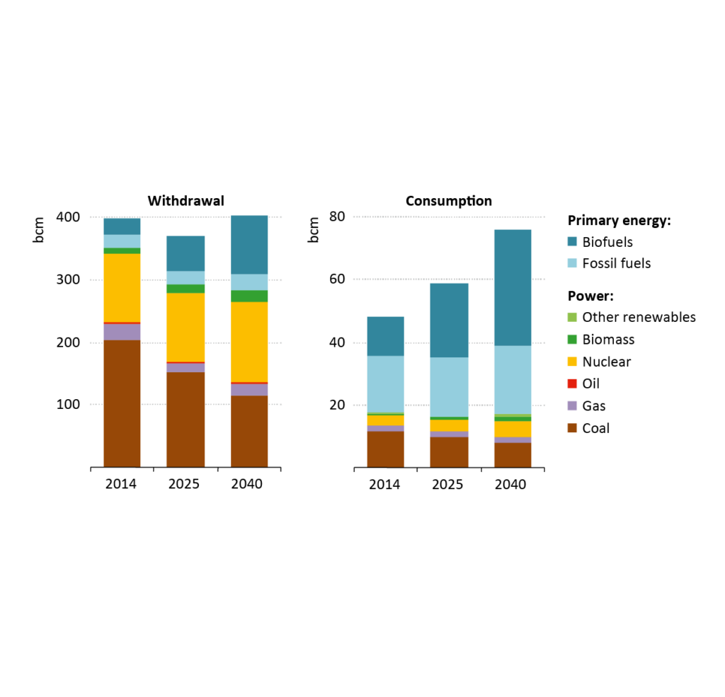 Crops used for biofuels have high water intensities and are forecast to use almost half the water usage by the energy sector by 2040